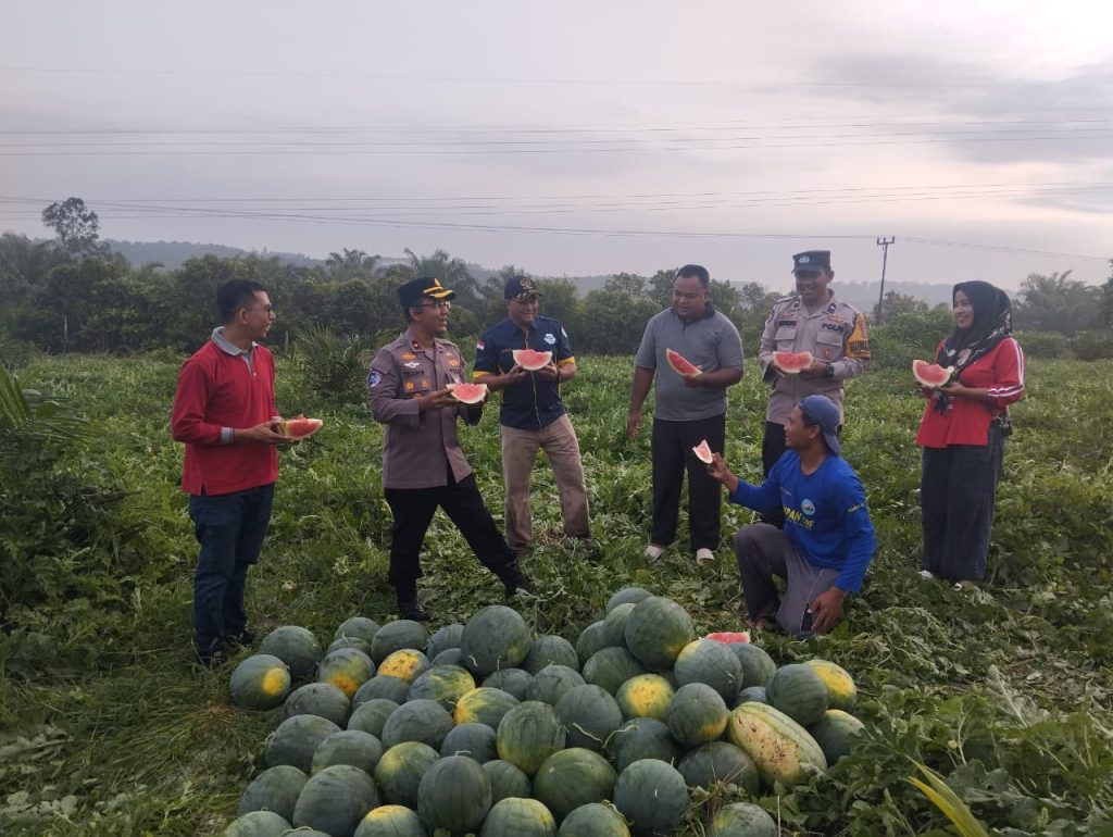 TUALANG, HALAMANRIAU.COM- Kapolsek Tualang, Kompol Teguh Wiyono, S.H., M.H., melaksanakan kegiatan panen buah semangka bersama Pemerintah Kampung Perawang Barat dalam rangka mendukung Program Badan Usaha Kampung (BUMKam) Perawang Barat, Kecamatan Tualang, Kabupaten Siak.